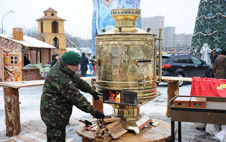 En el samovar el agua se calienta con carbón, maderas y piñas que arden lentamente dentro en un tubo ubicado en el centro, con el que se mantiene la bebida a una temperatura constante y caliente. En la parte superior del samovar se apoya una pequeña tetera con te en hebras concentrado. Se servía un poco en la taza y se diluía con agua caliente del samovar.